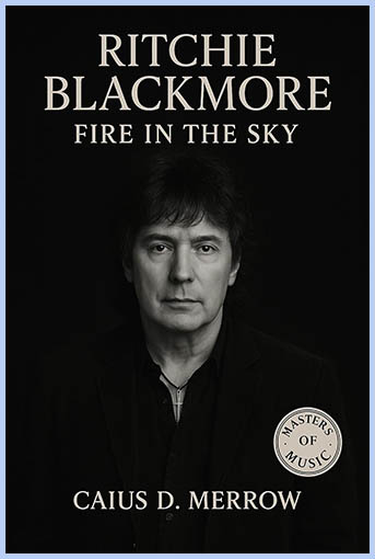 ISBN: ISBN-13: 979-8263680145 Writer: Caius D. Merrow Publisher: Independently published Released: September 2025 Notes: Ritchie Blackmore is one of rock's most enigmatic architects, a guitarist whose granite riffs reshaped hard rock and whose later reinvention built an entirely new acoustic kingdom. Ritchie Blackmore — Smoke on the Water, Fire in the Sky traces his uncompromising path with authority and detail, from postwar England to the heights of Deep Purple and Rainbow, and finally to the candlelit halls of Blackmore's Night. The book begins with his Weston-super-Mare birth and Heston upbringing, where discipline and skiffle prepared his hands for precision. It follows him into Joe Meek's studios and the Outlaws' punishing circuits, before chronicling the launch of Deep Purple and their ascent through In Rock, Machine Head, and the immortal "Smoke on the Water." The narrative situates Blackmore inside the wider currents of the late 1960s and 1970s—record label economics, arena infrastructure, and the rise of live album culture. Rainbow's founding is examined in forensic depth, from Dio's mythic diction to the later MTV calculus of Joe Lynn Turner. Each shift in personnel, repertoire, and production is set against the pressures of markets, promoters, and the demands of spectacle. The story then pivots to the acoustic world of Blackmore's Night, where castles and seasonal releases built an economy as stable as Purple's arena years, yet rooted in intimacy and atmosphere. Every chapter blends micro-detail—gear setups, studio tactics, venue logistics—with macro-forces such as Napster, streaming, and the economics of heritage rock. The result is a biography that humanizes Blackmore without hagiography, charting his volatility, humor, and authority across decades. Definitive, cinematic, and culturally layered, this book captures not just what happened, but why it mattered—from Montreux fire to candlelit halls, riffs as granite blocks, and songs as enduring architecture.  |