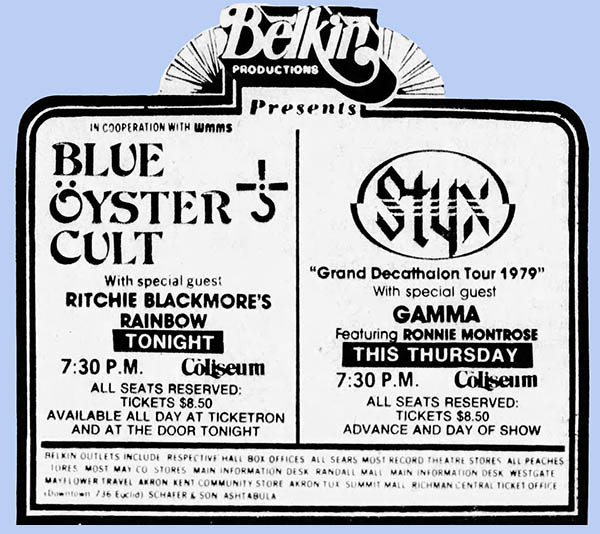 Memorabilia Adverts, Posters, Flyers & Passes 1975 1976 1977 1978 1979 1980 1981 1982 1983 1984 1995 1996 1997 2016 2017 2018 2019 1979 ![]() September 07-19 - German Tour (cancelled) ![]() World Tour 1979 - 1980 Crew Pass ![]() World Tour 1979 - 1980 Crew Pass ![]() September 18 - Veteran's Memorial Coliseum, New Haven CT, USA ![]() September 21 - Cobo Hall, Detroit MI, USA The Lansing Star 20-26.09.1979 ![]() September 22 - Civic Center, Lansing MI, USA The Lansing Star 20-26.09.1979 ![]() September 27 - Erie County Field House, Erie PA, USA ![]() September 29 - Spectrum, Philadelphia PA, USA ![]() September 29 - Spectrum, Philadelphia PA, USA ![]() September 29 - Spectrum, Philadelphia PA, USA ![]() September 29 - Spectrum, Philadelphia PA, USA Philadelphia Daily News 28.09.1979 ![]() September 30 - Civic Center, Baltimore MA, USA The Baltimore Sun 09.09.1979 ![]() September 30 - Civic Center, Baltimore MA, USA The Baltimore Sun 23.09.1979 ![]() September 30 - Civic Center, Baltimore MA, USA ![]() October 2 - Veterans Memorial Auditorium, Columbus OH, USA Lancaster Eagle-Gazette 29.09.1979 ![]() October 3 - Wendler Arena - Civic Center, Saginaw MI, USA ![]() October 4 - War Memorial Auditorium, Buffalo NY, USA ![]() October 5 - Civic Arena, Pittsburgh PA, USA The Pittsburgh Press 09.09.1979 ![]() October 5 - Civic Arena, Pittsburgh PA, USA The Pittsburgh Press 30.09.1979 ![]() October 6 - Hara Arena, Dayton OH, USA ![]() October 7 - Richfield Coliseum, Cleveland OH, USA The Akron Beacon Journal 16.09.1979 ![]() October 7 - Richfield Coliseum, Cleveland OH, USA ![]() October 7 - Richfield Coliseum, Cleveland OH, USA ![]() October 7 - Richfield Coliseum, Cleveland OH, USA Cleveland Scene 04.10.19796 ![]() October 7 - Richfield Coliseum, Cleveland OH, USA The Akron Beacon Journal 23.09.1979 ![]() October 7 - Richfield Coliseum, Cleveland OH, USA The Akron Beacon Journal 07.10.1979 ![]() October 7 - Richfield Coliseum, Cleveland OH, USA ![]() October 09 - Evansville Coliseum, Evansville IN, USA Indiana Rock History ![]() October 10 - Dane County Memorial Coliseum, Madison WI, USA ![]() October 11 - Brown County Veterans Memorial Arena, Green Bay WI, USA ![]() October 11 - Brown County Veterans Memorial Arena, Green Bay WI, USA Green Bay Press-Gazette 21.09.1979 ![]() October 12 - International Amphitheatre, Chicago IL, USA Chicago Tribune 12.10.1979 ![]() October 13 - Civic Auditorium, Omaha NE, USA ![]() October 13 - Civic Auditorium, Omaha NE, USA The Lincoln Star 30.09.1979 ![]() October 13 - Civic Auditorium, Omaha NE, USA The Lincoln Star 07.10.1979 ![]() October 14 - Hammons Center, Springfield MO, USA Springfield Leader and Press 30.09.1979 ![]() October 14 - Hammons Center, Springfield MO, USA Springfield Leader and Press 07.10.1979 ![]() October 14 - Hammons Center, Springfield MO, USA Springfield Leader and Press 10.10.1979 ![]() October 16 - Wings Stadium, Kalamazoo MI, USA Kalamazoo Gazette 28.09.1979 ![]() October 16 - Wings Stadium, Kalamazoo MI, USA Kalamazoo Gazette 13.10.1979 ![]() October 16 - Wings Stadium, Kalamazoo MI, USA Kalamazoo Gazette 14.10.1979 ![]() October 16 - Wings Stadium, Kalamazoo MI, USA Kalamazoo Gazette 7.10.1979 ![]() October 16 - Wings Stadium, Kalamazoo MI, USA Kalamazoo Gazette 14.10.1979 ![]() October 16 - Wings Stadium, Kalamazoo MI, USA Kalamazoo Gazette 16.10.1979 ![]() October 16 - Wings Stadium, Kalamazoo MI, USA ![]() October 16 - Wings Stadium, Kalamazoo MI, USA ![]() October 18 - Market Square Arena, Indianapolis IN, USA The Indianapolis Star 23.09.1979 ![]() October 18 - Market Square Arena, Indianapolis IN, USA The Indianapolis Star 30.09.1979 ![]() October 18 - Market Square Arena, Indianapolis IN, USA The Indianapolis Star 10.10.1979 ![]() October 18 - Market Square Arena, Indianapolis IN, USA ![]() October 20 - Freedom Hall Civic Centre, Johnson City TN, USA ![]() October 24 - The Armory, Springfield IL, USA ![]() October 26 - Met Center, Minneapolis MN, USA ![]() October 26 - Met Center, Minneapolis MN, USA Star Tribune 09.09.1979 ![]() November 6 - Civic Auditorium, Santa Cruz CA, USA ![]() November 6 - Civic Auditorium, Santa Cruz CA, USA Santa Cruz Sentinel 05.11.1979 ![]() November 6 - Civic Auditorium, Santa Cruz CA, USA ![]() November 6 - Civic Auditorium, Santa Cruz CA, USA November 7 - Auditorium Arena, Oakland CA, USA ![]() November 6 - Civic Auditorium, Santa Cruz CA, USA November 7 - Auditorium Arena, Oakland CA, USA BAM Magazine 02.11.1979 ![]() November 7 - Auditorium Arena, Oakland CA, USA ![]() November 7 - Auditorium Arena, Oakland CA, USA The Petaluma Argus-Courier 02.11.1979 ![]() November 9 - Swing Auditorium, San Bernardino CA, USA The San Bernardino County Sun 02.11.1979 ![]() November 9 - Swing Auditorium, San Bernardino CA, USA November 11 - Auditorium Arena, Oakland CA, USA The Los Angeles Times 28.10.1979 ![]() November 9 - Swing Auditorium, San Bernardino CA, USA November 11 - Auditorium Arena, Oakland CA, USA ![]() November 10 - Fox Theater, San Diego CA, USA ![]() November 10 - Fox Theater, San Diego CA, USA The Los Angeles Times 09.11.1979 ![]() November 11 - Auditorium Arena, Oakland CA, USA ![]() November 11 - Auditorium Arena, Oakland CA, USA The Los Angeles Times 20.10.1979 ![]() November 19, 20 & 21 - Music Theatre, Royal Oak MI, USA Rescheduled for December 11 & 12 ![]() November 19, 20 & 21 - Music Theatre, Royal Oak MI, USA Rescheduled for December 11 & 12 ![]() November 26 - Catholic Youth Center, Scranton PA, USA December 2 - Agricultural Hall, Allentown PA, USA The Morning Call 24.11.1979 ![]() November 30 - Calderone Concert Hall, Hempstead Long Island NY, USA ![]() November 30 - Calderone Concert Hall, Hempstead Long Island NY, USA ![]() December 1 - Capitol Theater, Passaic NJ, USA ![]() December 1 - Capitol Theater, Passaic NJ, USA ![]() December 1 - Capitol Theater, Passaic NJ, USA Daily Record (Morristown) 30.11.1979 ![]() December 1 - Capitol Theater, Passaic NJ, USA ![]() December 1 - 