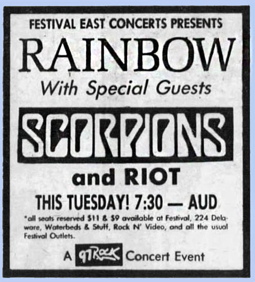 Memorabilia Adverts, Posters, Flyers & Passes 1975 1976 1977 1978 1979 1980 1981 1982 1983 1984 1995 1996 1997 2016 2017 2018 2019 1982 ![]() 1982 World Tour Crew Pass ![]() 1982 World Tour Band Pass ![]() ![]() 1982 World Tour Passes ![]() May 7 - SIU Arena, Carbondale IL, USA The Daily Egyptian 26.04.1982 ![]() May 7 - SIU Arena, Carbondale IL, USA The Daily Egyptian 26.04.1982 ![]() May 7 - SIU Arena, Carbondale IL, USA The Daily Egyptian 04.05.1982 ![]() May 7 - SIU Arena, Carbondale IL, USA The Daily Egyptian 04.05.1982 ![]() May 7 - SIU Arena, Carbondale IL, USA ![]() May 8 - Decatur Civic Center, Decatur IL, USA ![]() May 8 - Decatur Civic Center, Decatur IL, USA ![]() May 8 - Decatur Civic Center, Decatur IL, USA ![]() May 8 - Decatur Civic Center, Decatur IL, USA Herald and Review 25.04.1982 ![]() May 8 - Decatur Civic Center, Decatur IL, USA Herald and Review 02.05.1982 ![]() May 8 - Decatur Civic Center, Decatur IL, USA Herald and Review 02.05.1982 ![]() May 8 - Decatur Civic Center, Decatur IL, USA Herald and Review 07.05.1982 ![]() May 8 - Decatur Civic Center, Decatur IL, USA Herald and Review 09.05.1982 ![]() May 9 - Veterans Memorial Auditorium, Columbus OH, USA [Cancelled] ![]() May 9 - Veterans Memorial Auditorium, Columbus OH, USA [Cancelled] ![]() May 11 - IMA Auditorium, Flint MI, USA May 13 - Civic Centre, Lansing MI, USA May 14 - Cobo Arena, Detroit MI, USA May 15 - Wings Stadium, Kalamazoo MI, USA ![]() May 13 - Civic Centre, Lansing MI, USA ![]() May 13 - Civic Centre, Lansing MI, USA ![]() May 13 - Civic Centre, Lansing MI, USA ![]() May 13 - Civic Centre, Lansing MI, USA ![]() May 14 - Cobo Arena, Detroit MI, USA ![]() May 14 - Cobo Arena, Detroit MI, USA ![]() May 14 - Cobo Arena, Detroit MI, USA ![]() May 14 - Cobo Arena, Detroit MI, USA ![]() May 15 - Wings Stadium, Kalamazoo MI, USA Kalamazoo Gazette 08.05.1982 ![]() May 15 - Wings Stadium, Kalamazoo MI, USA Kalamazoo Gazette 13.05.1982 ![]() May 15 - Wings Stadium, Kalamazoo MI, USA Kalamazoo Gazette 09.05.1982 ![]() May 15 - Wings Stadium, Kalamazoo MI, USA Kalamazoo Gazette 13.05.1982 ![]() May 15 - Wings Stadium, Kalamazoo MI, USA Kalamazoo Gazette 14.05.1982 ![]() May 15 - Wings Stadium, Kalamazoo MI, USA Kalamazoo Gazette 14.05.1982 ![]() May 16 - Memorial Coliseum, Fort Wayne IN, USA ![]() May 18 - Sports Arena, Toledo OH, USA ![]() May 18 - Sports Arena, Toledo OH, USA ![]() May 20 - Cincinnati Gardens, Cincinnati OH, USA ![]() May 20 - Cincinnati Gardens, Cincinnati OH, USA ![]() May 21 - Louisville Gardens, Louisville KY, USA ![]() May 21 - Louisville Gardens, Louisville KY, USA ![]() May 22 - Richfield Coliseum, Cleveland OH, USA ![]() May 22 - Richfield Coliseum, Cleveland OH, USA ![]() May 22 - Richfield Coliseum, Cleveland OH, USA ![]() May 22 - Richfield Coliseum, Cleveland OH, USA ![]() May 22 - Richfield Coliseum, Cleveland OH, USA ![]() May 22 - Richfield Coliseum, Cleveland OH, USA ![]() May 23 - Market Square Arena, Indianapolis IN, USA ![]() May 23 - Market Square Arena, Indianapolis IN, USA ![]() May 23 - Market Square Arena, Indianapolis IN, USA ![]() May 23 - Market Square Arena, Indianapolis IN, USA ![]() May 26 - Palmer College Alumni Auditorium, Davenport IA, USA ![]() May 28 - Westfalenhalle, Dortmund, Germany [Cancelled - Rockpop in Concert Festival] ![]() May 28 - Westfalenhalle, Dortmund, Germany [Cancelled - Rockpop in Concert Festival] ![]() May 28 - Westfalenhalle, Dortmund, Germany [Cancelled - Rockpop in Concert Festival] ![]() May 29 - Iowa State Fairgrounds, Des Moines IA, USA ![]() May 29 - Iowa State Fairgrounds, Des Moines IA, USA ![]() ![]() May 29 - Iowa State Fairgrounds, Des Moines IA, USA ![]() May 29 - Carl Diem Sportgelände, Würzburg, Germany [Cancelled - Open Air Festival] ![]() May 29 - Carl Diem Sportgelände, Würzburg, Germany May 30 - Olympisches Reitstadion, München-Riem, Germany [Cancelled - Open Air Festival] ![]() May 30 - Olympisches Reitstadion, München-Riem, Germany [Cancelled - Open Air Festival] ![]() June / July - USA Tour Advert by Polygram Records some dates got changed or cancelled ![]() June 2 - Metropolitan Sports Center, Minneapolis MN, USA ![]() June 2 - Metropolitan Sports Center, Minneapolis MN, USA ![]() June 2 - Metropolitan Sports Center, Minneapolis MN, USA ![]() June 4 - Brown County Veterans Memorial Arena, Green Bay WI, USA [Cancelled] ![]() June 4 - Brown County Veterans Memorial Arena, Green Bay WI, USA [Cancelled] ![]() June 5 - Alpine Valley Music Theatre, East Troy WI, USA ![]() June 5 - Alpine Valley Music Theatre, East Troy WI, USA ![]() June 5 - Alpine Valley Music Theatre, East Troy WI, USA ![]() June 7 - June 12 : Canada Tour ![]() June 8 - Memorial Auditorium, Kitchener ON, Canada ![]() June 9 - CNE Coliseum, Toronto ON, Canada ![]() June 10 - Le Colisée, Quebec City QC, Canada ![]() June 12 - Verdun Auditorium, Montreal QC, Canada ![]() June 12 - Verdun Auditorium, Montreal QC, Canada ![]() June 12 - Verdun Auditorium, Montreal QC, Canada La Presse (Montreal) 12.06.1982 ![]() June 15 - Fairgrounds Grandstand, Allentown PA, USA The Aquarian Weekly 09.06.1982 ![]() June 15 - Fairgrounds Grandstand, Allentown PA, USA ![]() June 15 - Fairgrounds Grandstand, Allentown PA, USA ![]() June 17 - War Memorial Auditorium, Rochester NY, USA ![]() June 17 - War Memorial Auditorium, Rochester NY, USA ![]() June 18 - Veterans Memorial Coliseum, New Haven CT, USA ![]() June 19 - Madison Square Garden, New York City NY, USA ![]() June 19 - Madison Square Garden, New York City NY, USA ![]() June 19 - Madison Square Garden, New York City NY, USA ![]() June 19 - Madison Square Garden, New York City NY, USA The Aquarian Weekly 09.06.1982 ![]() June 19 - Madison Square Garden, New York City NY, USA ![]() June 19 - Madison Square Garden, New York City NY, USA ![]() June 19 - Madison Square Garden, New York City NY, USA ![]() June 21 - City Island, Harrisburg PA, USA ![]() June 22 - Memorial Auditorium, Buffalo NY, USA ![]() June 22 - 