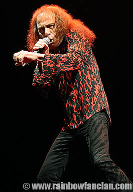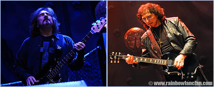Next up is a song about 'the giant clock in the sky that pushes us round and round' according to Ronnie. It's "Time Machine", another track from "Dehuminizer". The song ends with a drumsolo by Vinnie Appice.Another two songs from the new album "Fear" and "Follow The Tears" are performed. Inbetween these two songs there's "Falling Off the Edge of the World". Before the song starts Ronnie is making a round along all the other 3 members on stage and give them the opportunity to say a few words through his microphone. Vinny says 'it's fucking cold up here and wants the audience to make some more noise'. Then Ronnie announce the song as "it's something like diving off the end of the platform". The set ends with the classic Dio era Sabbbath tracks "Die Young" and a long version ofcourse of "Heaven and Hell". In the mean time the clock has gone past midnight. Heaven and Hell returns for an encore and give the enthusiastic crowd more with "Country Girl" and finish the show with a good rockin' version of "Neon Knights". ![]() We have seen today many new up and coming bands. The old experienced bands like Motorhead & Heaven and Hell are still way ahead of them. Mind you, they have a few decades more of experience so not really a surprise. Heaven and Hell was without a doubt the highlight of the day. They produced an impressive wall of sound. Tony Iommi provided the doomy and heavy riffs. Geezer Butler with his thundering bass and the powerdrums by Vinnie Appice made the concrete carpet under it. We mustn't forget the hidden keyboardplayer Scott Warren. He also is a part of the huge sound. And then there are ofcourse the excellent vocals of Ronnie James Dio. Far in his sixties he still is all over the stage. Amazing to see him move around that much. His voice is still very good, ofcourse not as good as it once was but it's still amazing to hear the man sing so good. The big smile on his face prove he's still enjoying every minute of it. The audience just looked and listened cause he's still the man on top of the mountain. |