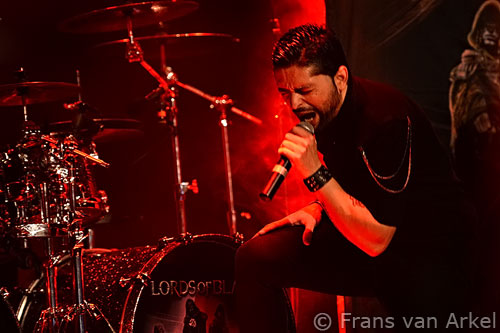 At 22.30 the Lords of Black kick off their show after the intro with 'Merciless'. Ofcourse the eyes of the crowd are pointed in the first place at Ronnie Romero. The new voice of Rainbow impress everyone right away. Then there's the bassist Javier Garcia. Great bassplayer, superb showman with his funny red goatee. What a guy! The drummer Andy C hits and kicks his drum kit like crazy. He's a real hardrock drummer. Ritchie Blackmore should check these two guys out as well because they rock like hell. And then there's Tony Hernando. Obvious a very experienced guitar player. He's the main man of Lords of Black since he wrote most of their songs. He knows how to handle his six string axe very well and is an excellent showman as well.Lords of Black do songs of both their first and second album. And they rock. Don't expect anything too much like Rainbow. These Spanish metallers play pure power metal, so they are much heavier. But they are great and the audience enjoys every minute of the show. Even though the crowd is very small Lords of Black play at full strength. Their songs are pretty strong and enjoyable once you get used to their music that is quite different than our beloved Rainbow sound. But Ronnie excels and so does the other three members of Lords of Black. The band plays for some 70 minutes and play some very strong material from both their albums. The one I like best is the dedicated to and inspired by Phil Lynott song called 'Cry No More'. An excellent track written by Tony Hernando that sounds like the old Thin Lizzy days. It also comes close to bands like Rainbow and Whitesnake. Just a superb track. Despite the small audience they return for an encore. First they give us the long but excellent 'When Everything Is Gone'. But the night is not complete with a grand finale. That one is tonight 'Neon Knight', one of the brilliant tracks from the Black Sabbath era when Ronnie James Dio was their singer. And Ronnie Romero sings it very well again. Just after midnight the show is over. Setlist: ![]() Malevolently Beautiful (intro) Merciless Nothing Left to Fear Everything You're Not New World's Comin' The Art of Illusion I: Smoke and Mirrors The Art of Illusion II: The Man From Beyond Ghost of You Guitar Solo Tony Hernando Tears I Will Be Forgive or Forget Intro / Lords of Black Cry No More Shadows of War Encore: When Everything Is Gone Neon Knights |