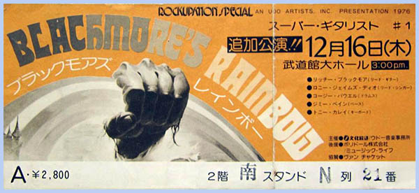 Ticket Stubs 1975 1976 1977 1978 1979 1980 1981 1982 1983 1984 1995 1996 1997 2016 2017 2018 2019 1976 March 24 - Civic Auditorium, Santa Monica CA, USA Ritchie plays encore with The Sweet ![]() June 6 - NorthWest Rock Festival, State Line ID, USA [Cancelled] ![]() June 13 - Palace Theater, Albany NY, USA