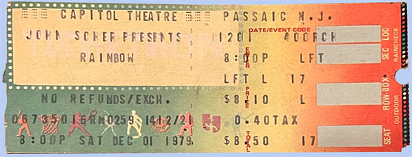 ![]() October 24 - The Armory, Springfield IL, USA [support act for Blue Oyster Cult - Rainbow replaced by Pat Travers]