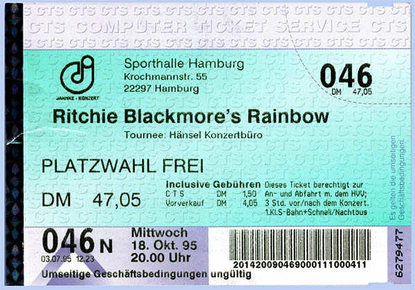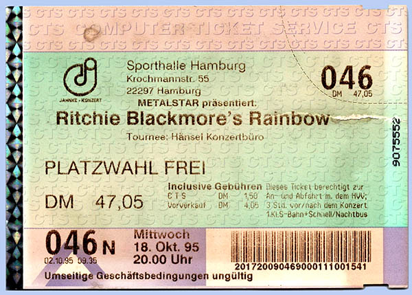 Ticket Stubs 1975 1976 1977 1978 1979 1980 1981 1982 1983 1984 1995 1996 1997 2016 2017 2018 2019 1995 September 30 - House Of Culture, Helsinki, Finland