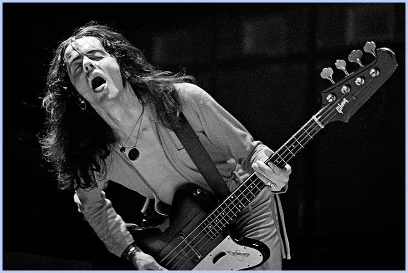 JIMMY BAIN Jammy Jimmy Jimmy Bain finally got lucky when he joined DIO ![]() Has Jimmy found his pot of gold at last? Skipping jauntily over the Rainbow, 'Rising' briefly to a flood of spotlight and then whoops perhaps he forgot where his feet were as he danced along with his head in the air, for Jimmy slipped and the next thing he knew he was tumbling Down To Earth... We-ell never mind - he had plenty of company: there was Cozy, and Tony, and Don, and Graham... and who was that squitty little man with the lungs of a lion? Ah yes, Ronnie. Of course, neither Jimmy nor Ronnie sat around for long commiserating (if they really did of course) with each other - the wide-eyed (or is that 'wild-eyed'?) Scots Rocker pieced together a very efficient little ensemble with Lizzy evacuee Brian Robertson - Wild Horses didn't tread the boards for long. As for dinky Dio, the world knows that he cast his powerful little spell on the Sabs and took them to Heaven and Hell and back in one fell swoop, before deciding his name wasn't big enough on the cover 'Time to collect my own army' he rubbed his hands with glee. Meanwhile young Jimmy was gathering his thoughts together having reached the conclusion that the world needed a 'SUPER-heavy band' and that he was gonna be the one to throw the weight around. But, no sooner had he uttered the immoral word 'Eureka!' than the phone rang..... "Sorry I'm late, ah-yawn-scuse me, I only just go' up". and Jimmy stretches his limbs in one almighty "wooargh that's better", shakes his head to banish any lingering sleep and focusses his bleary eyes on me. Jimmy, of course, has every right to feel shagged - "I spent four months in the studio with Ronnie and right after that I did the Scorpions album - that's another 4 months. I just had time to mow the lawn - I tell ya it was like a jungle after 8 months! - do a few interviews, then fly back to the States for Dio's tour with Aerosmith..." ![]() Dio's machinery we'll fiddle about with later. First, while we're about it, what makes Jimmy tick? And how did James Bain, quantity surveyor and 9 to 5-er, end up thwanging his way into the rock 'n' roll-over biz (and indeed two rockin' epical musical cliques?) These questions and more are just about to be answered so don't let Rover loose on MF yet.... "I've always wanted to be a player, but I didn't actually turn professional till I was about 20. After I'd finished my four years of surveyor training, I went over to Canada, but after a while I began to get really disillusioned by all the 9 to 5 bullshit. So I started to play full-time. "It's been a bit of a struggle in some ways over the years, but in other ways it's been very rewarding. As long as you can keep playing and keep actually getting better at what you do, it's well worth while." Did Jimmy ever think 'oh God I don't know if I'll be able to handle it - day in day out on the road, in and out of hotels...'? "No - I think that's part of the drug of music. All the stuff that goes with it - the travelling and the touring and the pressure - has a positive effect on you. Keeps you going all the time. And y'know after all that time in the studio I was going nuts, I was just dying to get out on the road again. You can have too much studio - you haveta balance it out. "At the same time. It's great to be able to shut the door on the whole scene every now and then, and spend some time with your family, just relaxing. Off the road I guess I have a pretty boring existence..." Ha! Sez he! Still I guess he needs a little boredom every once a while; some time to recharge those batteries, so that when it's time to plug in again, all that suppressed energy's ready to burst in an explosion of activity. "Even when I'm actually on tour, I make sure that I keep myself at a low ebb all day before a gig. If you go running around all day letting all that adrenalin loose. you're too knackered to play properly!" Jimmy makes a conscious effort to stick to a strict routine when he's on the road, from conserving energy to packing his bags the 'night before' to save himself the horror of having to do it the next morning with a hangover! But his most important rule is never to take anybody on tour with him. He says It'd mess up his schedule! Whether he sticks to this one or not is another matter of course... This penchant for organising Jimmy the Rocker (as opposed to his alterego 'Jimmy the Homelover - The Man Behind Closed Doors') wasn't acquired all in one right y'know. Though he catapulted from a life of Marquee dates (with an outfit called Harlot) to the dazzling lifestyle of a Rainbow rider in one clean shot, his sudden plunge into what might've been obscurity must've landed him one helluva blow in the nuptials, because he started to watch his steps more carefully in future. He also realised that the only way to survive in such a dodgy business, is to "hold onto what you believe." This he offers as sound advice to any aspiring musicians on the verge of making their first fatal mistake. "It's particularly dangerous it the States! Y'know out there, anyone can get a band together if they're reasonably good-looking. Take Motley Crue for example - they have amazing equipment and incredible hair an everything, and they charge on stage like this (Jimmy impersonates irate gorilla) and as soon they start playing, it's like - WIMP rock. There's no fire there. They haven't had to fight all that hard to get anywhere - and they haven 't got anywhere. They're just sitting in Hollywood. "Thats why you've gotta be so careful when you go out there. It's so easy to get wowed by all the attention you get - but the thing is, everybody's treated like that. You can play at 'having a wild time in Hollywood' but if you don't keep hold of your scruples you haven't got a chance." In fact, Jimmy reckons that, on the whole, today's bands don't have to 'pay their dues' as much as their more experienced counterparts. That they don't have to go through the staggering-up-the-motorwa