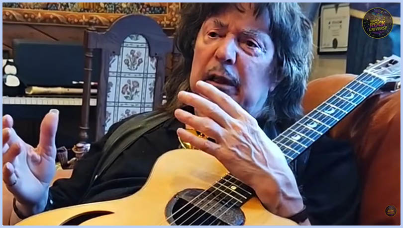 Ritchie Blackmore Livestream Birthday Interview with questions asked by fans ![]() What was your favorite solo with a Gibson? Probably Hush. We did that in two takes and the guitar was feeding back, which I liked because this is semi acoustic, which would feed back with the amplifier. And if you listen right in the beginning of the first four chords, then it feeds back. And I would say Hush because it was tricky to try and get in to playing parts. Somebody wanted to know if you would be coming to Germany again. Oh, I'm suffering from so many ailments. one is traveling and as much as obviously I love coming to Germany, I did since 1963 with Jerry Lee Lewis and I love the country and I've always loved the country and the people were very hardwork but they like to enjoy themselves at the same time. Plus the biggest musicians in the world have come from Germany. Bach, etc. Do you have any advice for a new guitarist? Yes, get a get a a lawyer immediately. ![]() Somebody else wants to know this the story behind this guitar you're holding. Oh, you can see it. Okay! This is a Lakewood made specially for me. I put a pickup in here. I wanted a small parlor guitar and I always I always like Martin Seeliger's Lakewoods. I've just got some two new ones, but I've had this probably 20 years, 30 years. He wants to know if that guitar is scalloped. No, not particularly. No, it's not. I just what I do instead of scalloping an acoustic, I make sure they're very big frets. Usually Gibson frets. I have them do a refretting job. And these are big frets, although they're probably Lakewood. Somebody's saying woolly bully. [laughter] Woolly bully traumatized me. I heard it for a year non-stop when I was living in Germany in Hamburg. And of course, when I first heard it, I hated it. But then I became to like it because it was so ridiculous, the song, and then I went to see them at the Starclub and obviously they'd never rehearsed before so they didn't know when they were starting or when they were stopping and I like that it was so off the cuff and natural. Obviously, they've never rehearsed the band. And as soon as you hear that chord, as soon as you hear that A7th, you know it's Woolly Bully. That is quite a feat. Really is. Speaking of feet, I have my feet. I'm not showing your feet.