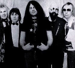 ![]() Van de "Ready an' Willing"-LP zijn nu drie singles verschenen. 1. "FOOL FOR YOUR LOVING" met "Mean Business" (van de "Lovehunter" LP) en "Don't Mess With Me (van de "Trouble" LP) - United Artists BP 352 ![]() 3. "BLACK AND BLUE" - b-kant en bestelnummer onbekend BLACK SABBATH ![]() Van de "Heaven and Hell" LP is de single "NEON KNIGHTS" in Engeland op single uitgebracht. Op de b-kant staat een fraaie live-versie van "CHILDREN OF THE SEA". Het bewijs wordt geleverd: Ronnie Dio doet het ook bij de Sabs live uitstekend. (Vertigo SAB 3) COZY POWELL Cozy heeft in totaal drie singles van zijn LP "Over The Top" uitgebracht. Vorig jaar al "THEME ONE". Dit jaar zijn daar bijgekomen: "THE LONER"/"EL SID" (Ariola ARO 2O5 - blauw vinyl) en "HEIDI GOES TO T0WN"/"OVER THE TOP part 1" (Ariola ARO 222 - doorzichtig vinyl). ![]() ![]() ![]() Tot zover PLAATPRAAT. GILLAN road of hope'n'glory Een rockster, die tien jaar na zijn eerste grote suksessen, opnieuw aan de top staat, moet wel iemand zijn met een groot uithoudingsvermogen. Ian Gillan, zojuist 35 geworden, is zo iemand. Zijn voorliefde voor muziek houdt hem bezig. Als je dan ook nog een LP maakt, die na één week binnenkomt op drie in de LP-charts, dan mag je tevreden zijn. En Ian is tevreden. Sinds zijn vertrek uit Deep Purple is zijn geschiedenis nogal ingewikkeld geweest. Sommigen zullen afgevraagd hebben hoeveel groepen hij tegelijke tijd had. De muzikale thema's zijn enorm gevarieerd geweest: van het "Child in Time" tijdperk via de jazz-rock van "Scarabus" tot het grote sukses van "Mr. Universe". "We hebben altijd een harde kern van fans gehad die grote afstanden moesten reizen om ons te zien. We hebben ons vaak geschaamd als we er aan dachten hoeveel kilometers ze er voor over hadden. Ik denk dat ze altijd vertrouwen hebben gehad in wat wij deden. Wat we ook deden, het was altijd wat we WILDEN doen. We werden nooit door andere factoren beinvloed." Gillan gelooft heilig in wat hij aan het doen is. Meer dan wat hij zou moeten doen. Het voert helemaal terug naar de tijd dat hij en Ritchie Blackmore de kreet 'geen compromissen' hoog in het vaandel droegen. "Ik veranderde iedere bezetting van mijn band om dezelfde reden waarom ik Purpe verliet: omdat het vervelend werd. Ik zing nu 18 jaar, ik heb niet anders gewild en het is altijd mijn ambitie geweest om zo suksesvol mogelijk te zijn maar, omdat je commerciele behoeften als geld om te leven moet erkennen, moet je altijd in staat zijn te zeggen dat je leuk vindt wat je doet. Ik was nooit tevreden met de vorige bezettingen totdat deze kwam, omdat er altijd wel iets niet helemaal goed zat. Maar nu zijn we op een punt gekomen waar ik volledig tevreden ben met de band." GILLAN heeft een nieuw platenkontrakt, nu met Virgin, een maatschappij die niet bepaald bekend is door hard-rock-bands. ![]() Het eerste resultaat is de LP "GLORY ROAD", die nu al de cijfers van "Mr. Universe" overschaduwd. Ian is tevreden met zijn werk. "Veel mensen hebben gezegd dat de plaat op Purple lijkt. Maar, met alle respekt, de meesten waren niet bij Purple betrokken toen dat gebeurde. Ze luisteren nu naar mijn platen met de Purple legende in hun achterhoofd plus het feit dat ik alle teksten en melodiën in Purple schreef, dus is er reden genoeg dat er enige overeenkomst is." Is het niet pijnlijk? "Nee, niet in het minst. Ik ben trots op dat deel van mijn leven." De teksten van Gillan zitten vol clichés. Ze lijken in vijf minuten geschreven. Is het eigenlijk waardevol om ze af te drukken? "Jazeker. Er gaat ongelofelijk veel gevoel en enthousiasme in een plaat zitten en het duurt lang om alles eruit te krijgen wat er i zit. Daarom is zestig procent wat we live doen, dingen zijn die het publiek al kent. Het is teveel gevraagd om zo veel nieuwe tracks te doen alleen omdat je verder bent. Je speelt nog steeds "Smoke on the water"? "Ik speel nog steeds een Purple song live. Ik zal dat ook blijven doen. We spelen of "Child in Time" of "Smoke", omdat die het meest geschikt zijn voor deze band. Maar ik hou van "Smoke". Ik kan me herinneren dat ik de song schreef, kijkend naar het brandende casino en de fans die door de ramen sprongen. Daaraan denk ik, iedere keer als ik het zing." Optreden is voor Ian het belangrijkste. Het zou het belangrijkste voor iedere band moeten zijn. "De songs schrijven is de kunst en ze live spelen is de kracht. Dat is een goede combinatie van wat je als persoon bent, wat je hebt geleerd, wat het publiek jou wil geven en wat je uit hen kunt krijgen. Ik geloof dat deze band in eerste instantie een liveband is, meer dan een studiogroep. Het is mogelijk dat je bij een bezoek aan een Gillan-konsert een gratis Gillan-LP in handen kreeg. Nu werd de ze plaat in beperkte oplage gratis bijvoegd bij "Glory Road". Het is Ian's manier om de mensen te bedanken die hem jarenlang gesteund hebben, ook in tijden van minder glorie. "Ik vermoed dat, wanneer ik een paar jaar geleden een stukje plastic zonder muziek verpakt in bruin pakpapier zou hebben uitgebracht, er toch zeker 20.000 mensen zouden zijn geweest die het gekocht hadden. Natuurlijk zouden ze nooit weer een Gillan LP hebben aangeschaft, maar dat was toch het aantal mensen dat regelmatig de konserten bezocht." Op de hoes van de gratis Gillan-LP staan allerlei kranteknipsels, die moeten aantonen hoe weinig zij de pers serieus nemen. "De knipsels waren belachelijk. Ze vergeten dat de mensen die werkelijk weten wat er aan de hand is de mensen zijn die naar de shows komen. En ik denk dat de pers veel minder invloed heeft dan ze vroeger hadden. En dan begint journalist nummer zoveel, nog eens over een Purple-reünie. Ian Gillan heeft intussen in een officiele verklaring te kennen gegeven NIET te willen meewerken aan een Deep Purple-reünie, zolang het er alleen maar om gaat er veel geld aan te verdienen door allerlei slimme zakenlieden. En gezien het feit dat Blackmore en Coverdale elkaar niet kunnen luchten of zien, betwijfelen wij of er ooit een reünie komt. C