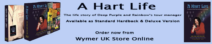 A Hart Life by Colin Hart & Dick Allix Wymer Publishing ISBN 978-0-9557542-7-2 / Released: November 2011 ![]() ![]() Colin Hart is known as tourmanager of Deep Purple and Rainbow. He was a roadie for Purple in the early 70's during their most successful period. When Blackmore left in 1975 to form Rainbow he followed the guitarplayer and continued as Rainbow's tourmanager. In 1984 when Blackmore disbanded Rainbow for the Deep Purple reunion, Colin resumed his role with these rock giants until 2001. The book was originally released in Japan in 2008 under the title "Between A Rock & A Hard Place". Now it's finally available in English. This edition is co-authored by Dick Allix with forewords by Roger Glover and (Hart's nephew) Paul Mann. The story is edited by Jerry Bloom of 'More Black Than Purple' fame. Colin has a very interesting story to tell. We here have a book of someone who was as close to the band as anyone can get. You get the stories out of the first hand and they are good. It gives a great look inside the involvement of setting up tours, transport and other arrangements for a major rockband. You also get all the Blackmore pranks, auditions and other stories including the tantrums of Ritchie and manager Bruce Payne. Colin is at times hard for certain people within the band and organisation, although he speaks highly of them all. The book has many stories that haven't been told before. And there are a bunch of rare photos from Colin's personal collection. Not all in top quality but they're rare and not seen before. We only can say this is a must read for any Rainbow and Deep Purple fan. The book comes also in a deluxe slipcase version with a bonus book. The slipcase has a front that shows nice collection of backstage, crew & VIP passes while the back has tickets and concertposters by both Rainbow and Deep Purple. The bonusbook has 80 pages and includes a reproduction of Deep Purple's 1974 Burn tour program (Colin was at the time ELF's tour manager) plus post 1985 photos, memorabilia and other artefacts from Colin's personal collection. Unfortunately much of Colin's personal collection of earlier Deep Purple and Rainbow years got lost in a house flood. |