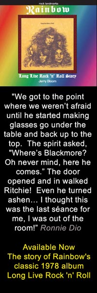 Fans of Ritchie Blackmore and Rainbow should aware of the fact that whenever a new publication comes out from the hand of Jerry Bloom (the man behind the More Black Than Purple magazine) you can expect a must buy item that is very detailed and full of known but also always some unknown facts untill now. Every Rainbow fan should have a copy of the fascinating unauthorised Biography on The Man In Black "Black Knight" written by Jerry.