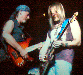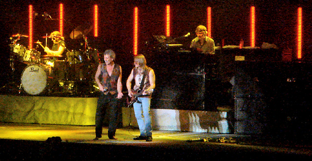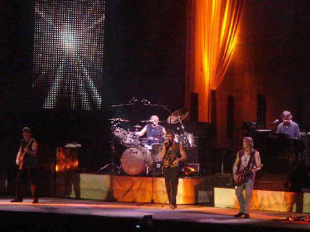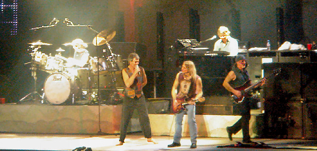 Deep Purple Heineken Music Hall, Amsterdam January 26th, 2006 ![]() On Thursdaynight January 26th Deep Purple played a sold out show in Amsterdam, The Netherlands. The night was opened by Dutch support-act SQY, a fine party rock'n'roll band with a good sense of humor. They did a 40 minute set before Deep Purple took the stage for a fine night of 2 hours of a good mix of old and new songs. Deep Purple still exist for 40% of ex-Rainbow members with Roger Glover on bass and Don Airey on keyboards. And especially when I got my hands on some free VIP tickets through the company I work for it was a good opportunity to see them back on stage some 25 years after they left Rainbow. Doesn't time fly? ![]() They kicked off with an excellent version of "Pictures Of Home". The first thing that took my attention was the great bass sound Roger Glover produced here live. And it was not just an incident, he would prove that through the whole show. Just amazing, I must admit I haven't seen Deep Purple live before since Steve Morse joined the band. Ofcourse I've seen the DVD's that are around but never noticed Roger in such a way. He always was "just the bassplayer", good musician, part of a tight rhythm section but inconspicuous. But now Roger, in the mean time 60 years old, was walking the stage like a young rock god and playing like one too. And so his sound has become now a larger and more important part for the total sound of the band it seems. Finally Deep Purple has let loose of the old concept of the Ritchie Blackmore greatest hits legacy setlist. The band have been playing for years mainly the old classic tracks from Ritchie's period in the band. Sometimes some rarely played live, but Ritchie-era tracks from the past which weren't done alive before plus less than a handfull newer songs. Often just one or two. But they finally gone off that idea this new tour. Wise decision which works out excellent. ![]() In between the songs he was fiddling about with some white papers in between the drums and keyboards stage. Possibly he's still struggling with the lyrics. But he gave a fine job, his voice was good tonight and it looked like he was enjoying the show very much. After the fine "Ted The Mechanic" from the "Purpendicular" album the band did, what was announced by Ian Gillan as a really happened story, "Living Wreck" (from "Deep Purple In Rock"). This was one of the highlights of the night. Excellent version. Don Airey hitting the ivory like Jon Lord in his best days and Steve Morse playing the song exactly note for note. After an excellent version of the title track of the new album "Rapture Of The Deep" plus "Before Time Began" we got "Mary Long" from the "Who Do We Think We Are" album. Great song, well played!. ![]() And then after some more Morse-era tracks, it was time for Steve to do his guitarsolo. He's a very good guitarist, but his sound is so different to Ritchie Blackmore. It's so thick and warm. Still he's now more than 10 years in this band and has become an important part of this mark of the band. The Deep Purple that once had Ritchie Blackmore in it's ranks no longer exist. This is a complete different band. They only share the name Deep Purple. And they do a fine job! ![]() Time for some more nostalgic songs. First up was "Lazy", followed by Don Airey's spotlight moment. Time for his keyboards solo. We got the Star Wars routine and a piano solo which included "Tulips from Amsterdam". Ian Paice was standing on the side of the stage pretending to play the turn organ during "Tulips". Funny move! Don's solo went over into "Perfect Strangers". I had the idea the first part of the song didn't went fluently, it sounded a bit distorted at times but that was gone after the solo. After some more of stuff of the new CD it was time to party with some classics like "Space Truckin'", "Highway Star" and "Smoke On The Water" which ended the set. ![]() Deep Purple returned on stage for a song from the days that only Ian Paice was part of the band that tonight was present, "Hush". Little Ian got time to do his drums solo. And then Roger started "Black Night" with his thundering bass. A very heavy intro to the last song of the night. Long version too, it ended a great night. Deep Purple gave a very good show tonight, they had an amazing lightshow and played a good choice of a combination of new songs plus old classics. Ian Gillan in fine form, Don Airey playing excellent, Roger Glover and Ian Paice being a very tight rhythm section and Steve Morse smiling his way through the night fitting very good in this band. After they thanked the audienced the screens showed a video how they went and got back into the flightcase. A roadie closed the flightcase and wheeled it away. So all in all a fine concert, the new stuffs sounds good and fresh. It's material that fits this line-up with Steve Morse on guitar. And the old classics were played very well. Yes, you miss an angry, moody six string axeman. These days you'll five smiling veterans on stage. There should be a devil on stage amongst them which makes it all totally different, more exciting. Then again, the devil from the old days is now entering the stages as an also smiling minstrel. Ritchie seems to be fully satisfied with what he's doing these days and so are his ex-Deep Purple mates without him. So Purple-wise this is the best of two worlds we get in this century. ![]() Setlist: ![]() |