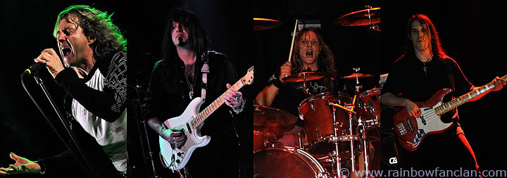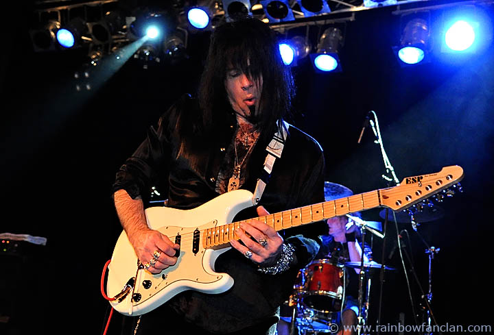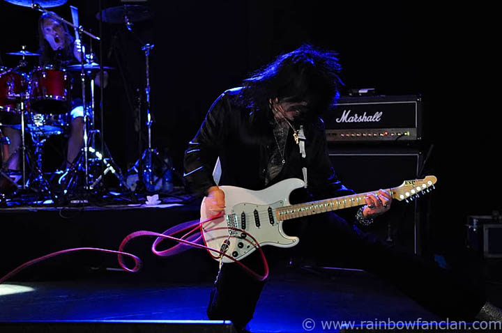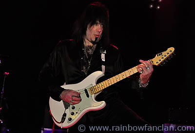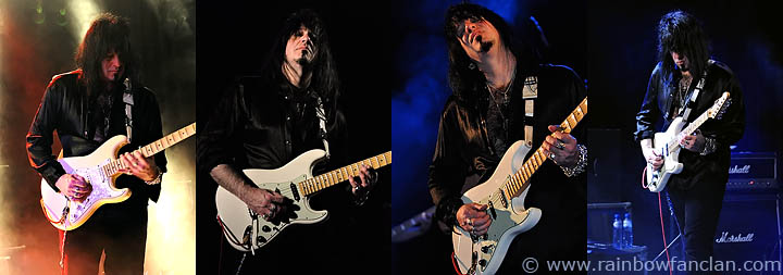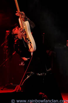 Joe Stump Bosuil, Weert, The Netherlands November 28, 2008 ![]() There are many guitarplayers influenced by Ritchie Blackmore. Some of the better known ones are Yngwie Malmsteen and Axel Rudi Pell. Joe Stump is another one. He has made name with his band Reign of Terror. Nowadays he plays concert under his own name. And since 2005 he's also part of the female fronted metal band HolyHell. He's also a guitar teacher at the famous Berklee College Of Music in Boston. There he is the specialist of speed- and shredmetal plus hardrock. ![]() Joe Stump is a cross between Yngwie Malmsteen and Ritchie Blackmore. He is also called "The Shred Lord". When you see the titles of some of his solo albums you know right away what to expect. There is for example "Guitar Dominance", "Night Of The Living Shred", "Supersonic Shred Machine", "2001: A Shred Odyssey" and his latest from 2004 "Speed Metal Messiah". Joe is one of the guys you can stick the label "axe hero" on. ![]() He kicks off with some instrumental stuff including "Retroactivity" in which we hear some reminders to Jimi Hendrix and Blackmore's Deep Purple 70's riffs. His band tonight has Jay Rigney on bass and Erik Stout on drums. Jay also played in Reign of Terror and is the bassplayer for HolyHell too. Erik is the present drummer of Dutch hardrock legends Vengeance. They just finished their new album "Soul Collector" which is to be released in January 2009. Jay and Erik are great rhythm section. They played together early this year also when Joe Stump did an Dutch Tour. By the way at one of those dates Mario Roelofsen of Dutch Tribute act Purple Rainbow joined them on stage to jam on some Deep Purple songs. The singer tonight is Ian Parry. He has been the singer for Hammerhead (who recorded an album in 1985 with Rainbow's David Rosenthal on keyboards), Vengeance, Perfect Strangers and Elegy. Earlier this year he sang backing vocals together with Doogie White on Royal Hunts' "Collision Course Paradox2". Ian is a great singer with a great set of pipes. The first part of the set exist of instrumentals and some Reign of Terror songs like "No Forgiving" and "Undercover". Joe is a great guitarplayer. He has a sound that has a real Blackmore touch. And he copied his style for a large part as well. Dressed in black, white Strat, Marshall tower, he's got all of that as we known from Blackmore's bad ass image. We also see all the wellknown tricks like playing the guitar with his teeth, behind his head, with his arse, throwing the guitar in the air and play it with the guitarcable. According to Joe you can't get any cooler than Ritchie as he has invented it all... And Joe shows it all to us tonight. Besides the clear influence of Ritchie Blackmore, there's also a nice bit that breathe Yngwie Malmsteen. Joe Stump plays Neo-Classical Speed Metal to European Power Metal and Old School Hard Rock to Speed Thrash Metal. ![]() The best bit is saved till the last part of the show. The audience get a lot wilder when Joe starts "Man On The Silver Mountain". He plays it very well including a fine "Blackmore's Blues". The rest of the set is saved for only Blackmore material including great versions of classics like "Burn", "Stormbringer" and "Mistreated". Joe is obviously enjoying himself. From time to time we see a big smile on his face while he plays the Blackmore stuffs we all enjoy so much. ![]() Joe, Jay and Erik return on stage for an encore. First there's a blistering instrumental version of "Still I'm Sad" including some "Greensleeves". Then Ian returns on stage to finish the gig with a fine, long version of "Black Night". ![]() Remainig tourdates: Nov 30: Kempen, Stradivari, Germany Dec 1: Leiden, The Duke, The Netherlands (Guitar Clinic) Dec 3: Verviers, Spirit of 66, Belgium Dec 4: Hamburg, Headbanger's Ballroom, Germany Dec 5: Dusseldorf, Tusaclub, Germany Dec 6: Wuppertal, Mad Dog, Germany more photos: part 1 - part 2 |