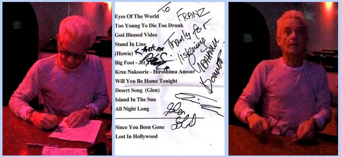 Glen Sobel had me having a Cozy flashback during his solo. I was half suspecting that 1812 Overture was going to be next. The night ended on a Rainbow note- All Night Long, Since You Been Gone and Lost In Hollywood. It was around 2:35 when they went off. Considering that it was quite late & they had been travelling most of the day & had just finished playing to go and meet people right away, shows how much they care about their fans. Graham was absolutely charming. Glen, Howie & Tim were all very nice & took time to talk, even as it was approaching 3:00 in the morning & they had a long drive ahead.