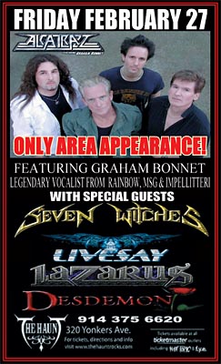 Friday is always a day to look forward to, but Friday, February 27, 2009 was a VERY special one! ALCATRAZZ were playing THE HAUNT, in Yonkers, NY!! I had seen them back in '83 in Milwaukee, WI, when No Parole From Rock N Roll was released. It had been a great show, seeing Graham & Yngwie for the the 1st time. The new Alcatrazz rocks way harder than it's predecessors.