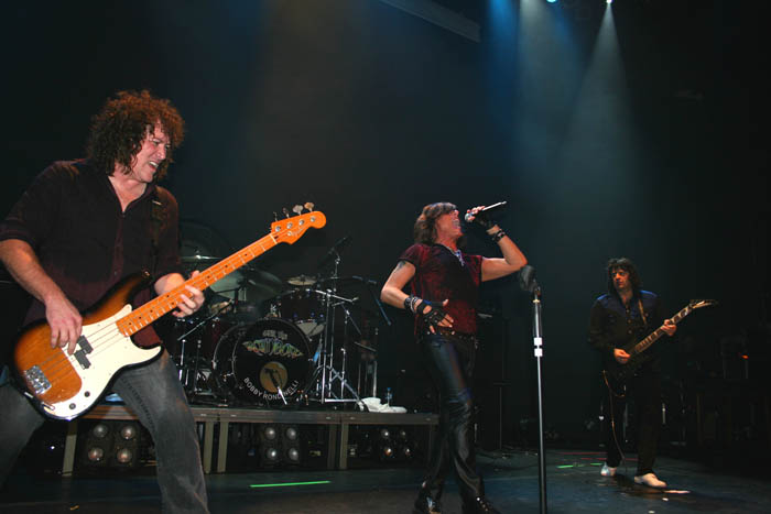 Over The Rainbow Principal Theater, Thessanoliki, Greece October 18th ![]() The pouring rain was coming down heavily on us as we were trying to find the venue where the dream of so many Rainbow fans would come true. Legendary band Rainbow was brought to life again thanks to an impressive collaboration of original band members, and most importantly, with the king of melody himself on vocals: Mr. Joe Lynn Turner. As the crowd started gathering I came to realize that we were actually going to see one of the last few great vocalists who had made history both with Rainbow and as a solo artist; the man who created a new, fresh path of melody for Rainbow that made the band popular to a wider audience, the front man who revived the career of guitar extraordinaire Yngwie Malmsteen, Deep Purple and so on. ![]() The audience responded immediately to the call and the trip to the history of Rainbow started; as the band had assured Rainbow fans, the repertoire would include all the big hits from the legendary band's history and this is precisely what happened. Personally, I was very impressed by the way Joe performed the Dio era, the man is a professional in every sense of the word and he can deliver any song in a way that hits your ear in an interesting way, and this, perhaps, is one of the abilities that makes him so special. However, it was Joe's era in Rainbow we were waiting for and it became evident quickly why Joe is such a great artist. First of all, let us be honest here. His voice really and truly rocks! Joe was generous throughout the gig and never stopped giving his best; his high notes, in particular, in some instances made the audience almost go silent! This was a true Rainbow best of, and the band delivered one hit after the other. From Dio's Long Live Rock and Roll to White's Ariel! Of course we all waited for the Turner true classic moments in Rainbow and the hits that we always associated his voice with Ritchie Blackmore's genius: when I Surrender came up the audience followed Joe line after line throughout the song. ![]() After two hours of rocking with super Turner hits like Jealous lover, Death Alley Driver the band finished with three songs encore: Spotlight Kid which was a dynamite, Gates of Babylon where Jurgen must have made his father proud and finally Can't Happen Here one of Turner's best songs in the concert. It was very hard not to be satisfied after that full stop! However, the band had another surprise for us, all four members came out to take some photos with the fans as well as to sign autographs. I admired the way all four musicians were very open to the fans and only too happy to take some photos with the fans who came to see the artists from a closer range. When our turn came to meet Joe as the "Joe Lynn Turner Greek fan site" we were truly honored and I must confess a bit embarrassed. The band was having something to eat after two hours of rocking and sweating, however Joe quickly got up from the table only to welcome us and greet us. I know that it is hard to write a review about a guy whom you like as a musician and as a person but this is nothing but the truth: Joe thanked us from his heart and he really meant it; he is not just a charismatic singer but a genuinely nice guy and we want to see him live with another Rainbow project or as a solo artist. Mr. Turner, from all of us here in Greece a big thank you for your music all these years and we are looking forward to having you back in Greece very soon. ![]() Review by: Michael Smernos