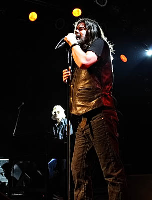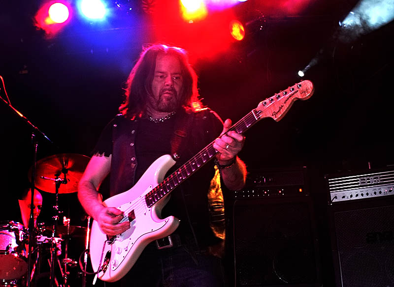 Demon's Eye with Doogie White Another Night with Demon's Eye in Bochum Zeche - Bochum, Germany March 1st, 2013 English version - Dutch version ![]() After a busy day and a nice prospect we traveled to Bochum for a surprising show of Demon's Eye. Before it already was announced that none other than Axel Rudi Pell would play a song and that was all the more reason to get back and spend more than 250 km on road to go and see this band. But like in previous editions, Demon's Eye is always worthwhile. Once arrived in the Zeche in Bochum we heard that three of the bandmembers were ill. They all had flu symptoms. Moni did not say who otherwise the public would pay too much attention to it. Once in the venue we bumped into Doogie and found out that he had been hit by flu. He gave me a warm welcome and immediately apologized for his voice. After we had a brief conversation, Doogie went backstage to prepare himself for the gig. Later we noticed also Andre and Maik were affected with the flu. ![]() Andre looked absolutely sick but drummed a very fine show. You need an expert to know that it's not Paice and Cozy sitting behind the drums. It sounds like cliché but this band plays really close to the original. Even real Blackmore freaks say it is incredible what you hear. This was therefore well reflected in Ariel. What a feeling Mark can put in that number. It just will give you goosebumps. Close your eyes and imagine yourself in 1995. Subsequently Sail away, and Burn deployed. Burn remains one of my favorite live songs with great drums. Then came a perfect version of You Fool No One and a great solo by Mark with Blues. This combination ended with Picture Within a tribute to the recently deceased Jon Lord. During Picture Within Doogie was again visible emotionally and I must say this song touches me always. Afterwards Doogie brought the symbolic salute to Jon. The set followed with Child In Time with masterful keyboard work of Florian. You're still recovering from the homage to Jon and Florian take us back away in Jon's work. It is clear that Florian in his daily work at the conservatory and is not an inexperienced musician. Passion and all what Florian felt. And not to mention a Doogie, despite vocal problems, filled the bucket. He gives himself completely. Without you realizing it Demon's Eye plays again a composition in the form of the singalong The Unknown Stranger. Remains a great song. Then came the moment many have been waiting for ...... Mister Axel Rudi Pell, at invitation of Doogie he played along with the masterpiece Mistreated. Mark left temporarily his place to Axel Rudi himself to indulge his home crowd. He lives in Bochum. It goes without saying that he was inspired by Blackmore. He plays Mistreated perfectly and can enthusiastically greet. Nice touch was that Doogie told Axel had bought new shoes for this show. You could sense that the Demon's Eye members gave a great performance tonight. After Mistreated Mark took his role again and Black Night was started and the audience started to sing along. The formal show neared the end with Perfect Strangers and Stargazer. ![]() Then followed the first encore Highway Star and a medley of: Long Live Rock 'n Roll / Starstruck / Woman From Tokyo and ..... Smoke On The Water. In the latter Doogie took the Stratocaster of Mark. That was surprising to hear. This shows once again despite vocal problems, he still continues to treat the public in a great performance as well as the whole band. Because honestly, no one really noticed that they wanted to finish their gig soon. Eventually the last encorefollowed anyway and it hit again right in the heart. Mark started with Temple of the King as a Tribute to Ronnie James Dio and Jon Lord. Again with an emotional Doogie White. Tears rolled down his cheeks, and it is certain that he left his feelings free rein. Finally, he thanked all Deep Purple, Rainbow members because they have made it possible for them to be here on this stage. With a thunderous applause the show ended and we spoke only briefly after the show with Mark and Florian who once again were grateful that fans from the Netherlands were present. We belong now also to the Die Hard fans of Demon's Eye. Then we went with a satisfied feeling home. This time without the after party with Doogie but he had to save his voice for the last performance the next day. Review & photos: ©Henk van Schijndel Set list ![]() intro 'Over the Rainbow' Kill the King Stormbringer Far over the Rainbow Gettin'Tighter Ariel Sail Away Burn Wasted Sunsets You fool no one/Blues/Picture Within Child in Time The unknown Stranger Mistreated (feat. Axel Rudi Pell) Black Night Perfect Strangers/Stargazer/Perfect Strangers first encore: Highway Star Medley: Long Live Rock'n Roll/Starstruck/Woman From Tokyo/Smoke On the Water* (*with Doogie on the Stratocaster!) second encore: Temple of the King ![]() Demon's Eye with Doogie White Another Night with Demon's Eye in Bochum Zeche - Bochum, Germany March 1st, 2013 English version - Dutch version ![]() Na een drukke werkdag en een mooi vooruitzicht afgereisd naar Bochum voor weer een verrassend concert van Demon's Eye. Vooraf was aangekondigd dat niemand minder dan Axel Rudi Pell een nummer zou meespelen en dat was temeer een reden om weer ruim 250 kilometer on te road te gaan om de band te zien. Maar zoals in voorgaande edities is Demon's Eye altijd de moeite waard. Eenmaal aangekomen in zaal Zeche in Bochum kregen we te horen dat drie van de bandleden ziek waren. Ze hadden alle drie griepverschijnselen. Moni wilde niet zeggen wie anders zou het publiek erop gaan letten. Eenmaal in de zaal kwamen we Doogie tegen en zijn verraadde al dat hij ook getroffen was door griep. Hij gaf me een warm welkom en verontschuldigde zich meteen voor zijn stem. Na een kort gesprek moest Doogie backstage' to prepare himself for the gig'. Achteraf bleek ook André en Maik getroffen. ![]() André oogde absoluut niet ziek en drumde een puike partij. Je moe