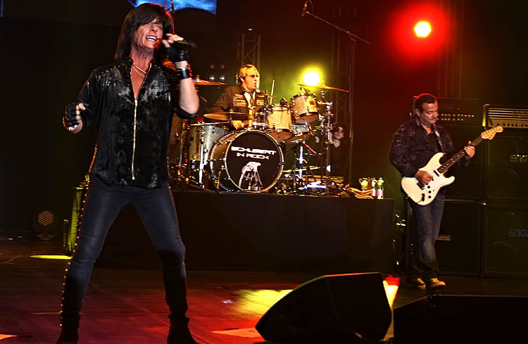 Schubert in Rock with Joe Lynn Turner, Doogie White & Don Airey Congress Dogana - Innsbruck, Austria December 6th, 2013 photos part 1 - photos part 2 ![]() "You gotta be kidding me". That was my first thought as I heard from the "Schubert in Rock" project. It was early this year – May I think – and I was still in heaven after seeing Voices of Rainbow in Japan. "Doogie and JLT again? Don Airey? Neil Murray? I'm there!" was my thought. And indeed, I was there. After a 7h train ride from Germany, I arrived in that beautiful town of Tirol region. In the evening I had the chance to meet and have a short talk with almost all the musicians at the hotel bar. They were all nice, especially Doogie who already knew me and Neil Murray, who by the way is a real gentleman and very polite. ![]() After half an hour chat with Joe, I went back to the hotel to rest before the concert and on my way I was a bit worried. Just 2 hours before doors open and I couldn't see a soul in front of the venue. Was Schubert in Rock destined to be a fiasco? Of course not. When I arrived at Dogana hall 45min before the show the line was so big that I really thought some people wouldn't make it in time for the show. I was lucky to cut the line and after I got my photo pass. About 8:15 PM a man came and announced Schubert in Rock. It seems the band was quite nervous but not Doogie White, the first star of the night who kicked in with "Good Morning Sir", one of the highlights of the record. I've seen Doogie live with many different bands (Cornerstone, Tank, Demon's Eye, Temple of Rock) but I don't think I ever saw him so excited on stage. "Davi" followed with Doogie on the vocals until he introduced Joe Lynn Turner who kicked in with "Cavalry of Evil", a very heavy song recorded by Turner for the Schubert in Rock album. I couldn't stop smiling when Joe announced Rainbow's "Fool for the Night". Last time I was so surprised with JLT sacking an old Rainbow classic was when he performed "Drinking with the Devil" with Brazen Abbot in Germany 2008. Unfortunately the audience didn't seem to know the song that well. The next star to go on stage was Marc Storace, the voice of Swiss rock legend Krokus. I must say I didn't like Storace's voice so far, but the guy is a damn good front man. Storace performed the catchy "Ready for the Action" which he recorded for Schubert in Rock, but I was amazed how versatile his voice was when he sung "Holy Ground" - another S.I.R. song originally recorded by Bernie Marsden. This is the most "pop" song of the album but Storace's voice indeed fits perfectly. Next guests were singer Tony Martin (ex-Black Sabbath), bass legend Neil Murray (ex-Whitesnake/Black Sabbath, M3, Empire, etc...) and former Rainbow and current Deep Purple keyboarder Don Airey performing Sabbath's classic "Headless Cross" from Martin's era. Although Martin still makes great records it was sad to see he's not able to perform his most famous song without help of a pedal board. And specially on the chorus Martin always passed to the audience to sing for him. ![]() Fortunately Storace came back with "Perfect Body". Although this song is one of the weakest of the record, it's meaning was threefold: 1- Save the audience from Martin's lame performance, 2- Warm the audience up for Don Airey's amazing keyboard solo. 3- Proof what a good front man Storace is. Doogie was quickly back to the stage where he performed "Stairway to Hell" (with Airey's Rainbow-ish awesome keyboard solo) before bringing Joe Lynn Turner back to the stage to share the vocals with him on "Lady of the Tower". This is one of the top 3 songs of Schubert in Rock album. For me personally was a deja vu, almost like seeing Voices of Rainbow again. Turner then sung "Black Jack Billy" by himself before the (unnecessary) drum solo. White would soon return to the stage to perform "Temple of the King" dedicated to the great Ronnie James Dio. White would still sing Deep Purple's "When a Blind Man Cries" backed up by Tony Martin. Martin sung King of Darkness before all the singers would return to the stage to sing Rainbow's classic "Long Live Rock n' Roll". Storace did a good job singing "Heavy Metal Party" (originally recorded by Biff Byford) before all musicians would come to the stage to perform Deep Purple's "Smoke on the Water" which ended this big rock party. The end of an unforgettable night that austrians will never forget. Congratulation to Klaus Schubert and all his crew for making his dream come true and bringing out one powerful album. Let's hope there will be a second part of this all star concert. ![]() Setlist: ![]() Davi (Schubert in Rock) – Doogie White Cavalry of Evil (Schubert in Rock) – Joe Lynn Turner Fool for the Night (Rainbow) – Joe Lynn Turner, Backing vocals Doogie White Ready for the Action (Schubert in Rock) – Marc Storace Holy Ground (Schubert in Rock) – Marc Storace Headless Cross (Black Sabbath) – Tony Martin, Neil Murray, Don Airey Young Free and Deadly (Schubert in Rock) – Tony Martin Perfect Body (Schubert in Rock) – Marc Storace Don Airey solo Stairway to Hell (Schubert in Rock) – Doogie White Lady of the Tower (Schubert in Rock) – Doogie White & Joe Lynn Turner Black Jack Billy (Schubert in Rock) – Joe Lynn Turner Drum solo Temple of the King (Rainbow) – Doogie White Child in Time (Deep Purple) – Doogie White, backing vocal Tony Martin Second King of Darkness (Schubert in Rock) – Tony Martin Long Live Rock n' Roll (Rainbow) – All singers Heavy Metal Party (Schubert in Rock) – Marc Storace Smoke on the Water (Deep Purple) – All singers except Tony Martin Review & photos: © Anderson Guimaraes |
