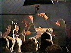 Not too far away, mid shot, a bit blurry, hands & heads, full show, 104 mins